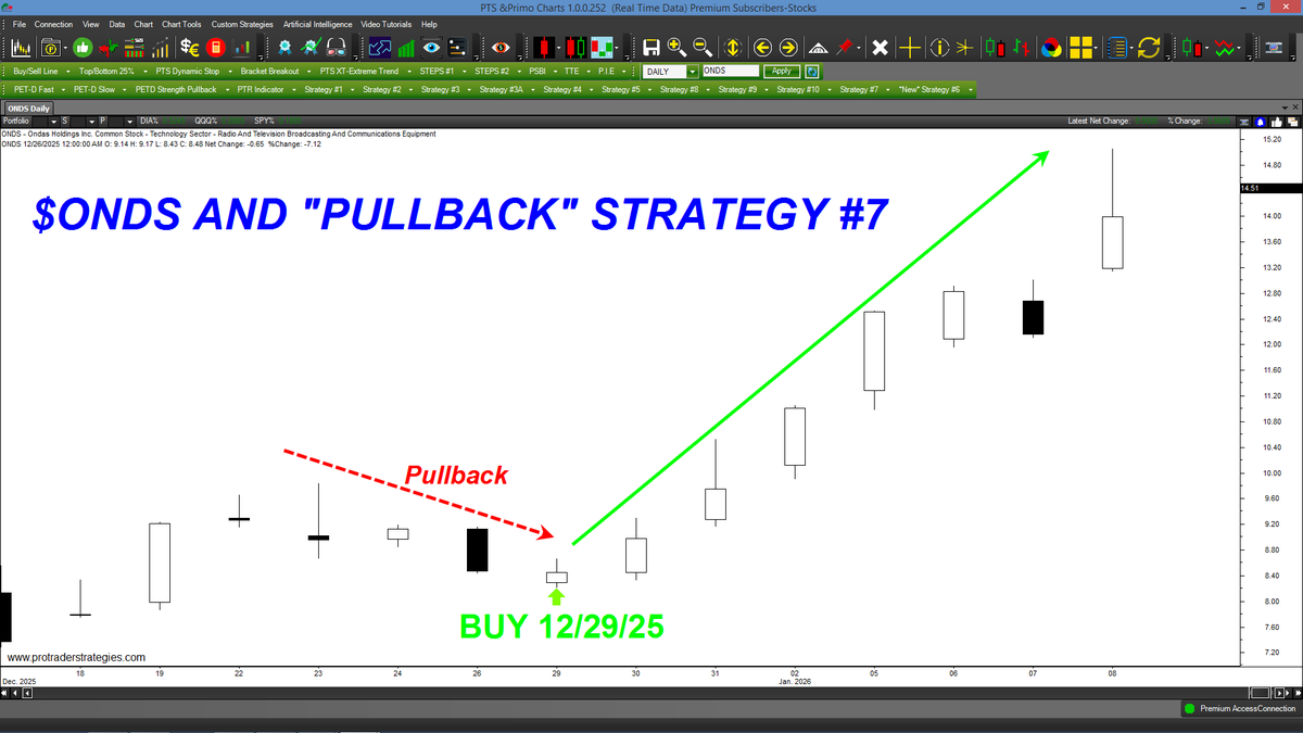 ANOTHER WINNING STRATEGY #7 BUY SIGNAL, THIS TIME IN $ONDS! All of our methods are based on market behavior & NOT on fundamentals. Take your trading to the next level in 2026 with http://ProTraderStrategies.com and Strategy #7 (All signals for student education only)