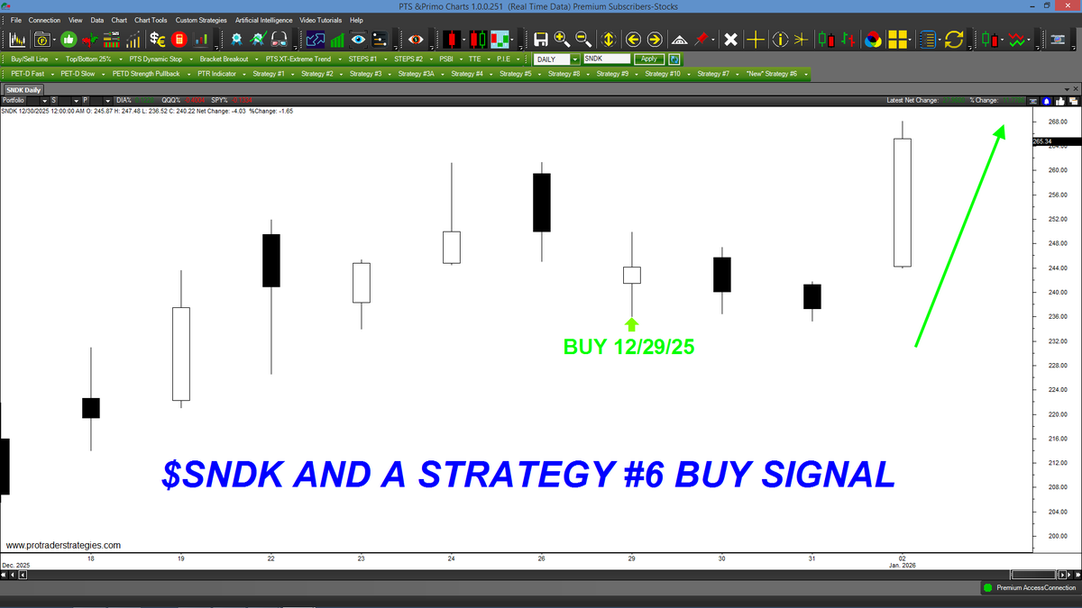 $SNDK IS UP SHARPLY TODAY BUT STRATEGY #6 GENERATED A BUY SIGNAL 3 DAYS IN ADVANCE! Short-term traders love this new method because signals usually last only 1-5 days. Strategy #6 is ONLY found at http://ProTraderStrategies.com (All signals for student education only)