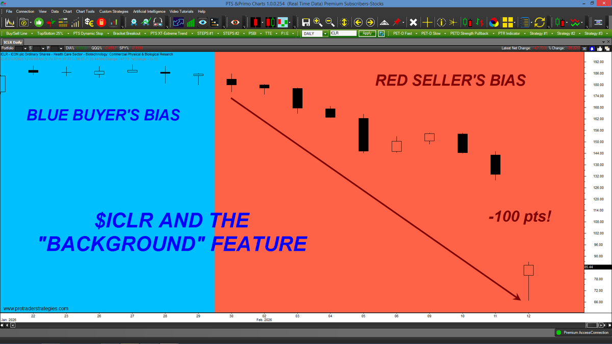 DO YOU THINK OUR "BACKGROUND" FEATURE COULD HAVE HELPED YOU TRADE $ICLR? Once again, you ONLY lose money when you're out-of-sync with whatever market you're trading. The "Background" feature can help. ONLY at http://ProTraderStrategies.com (All signals for student education only)