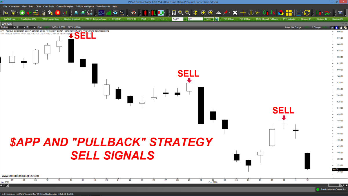 OUR "PULLBACK" STRATEGIES CAUGHT THE MOST RECENT HIGHS IN $APP. Our "Pullback" methods are designed to buy near the lows of an uptrend & to sell near the highs of a downtrend - that's it! Learn all of the rules at http://ProTraderStrategies.com (All signals for student education only)