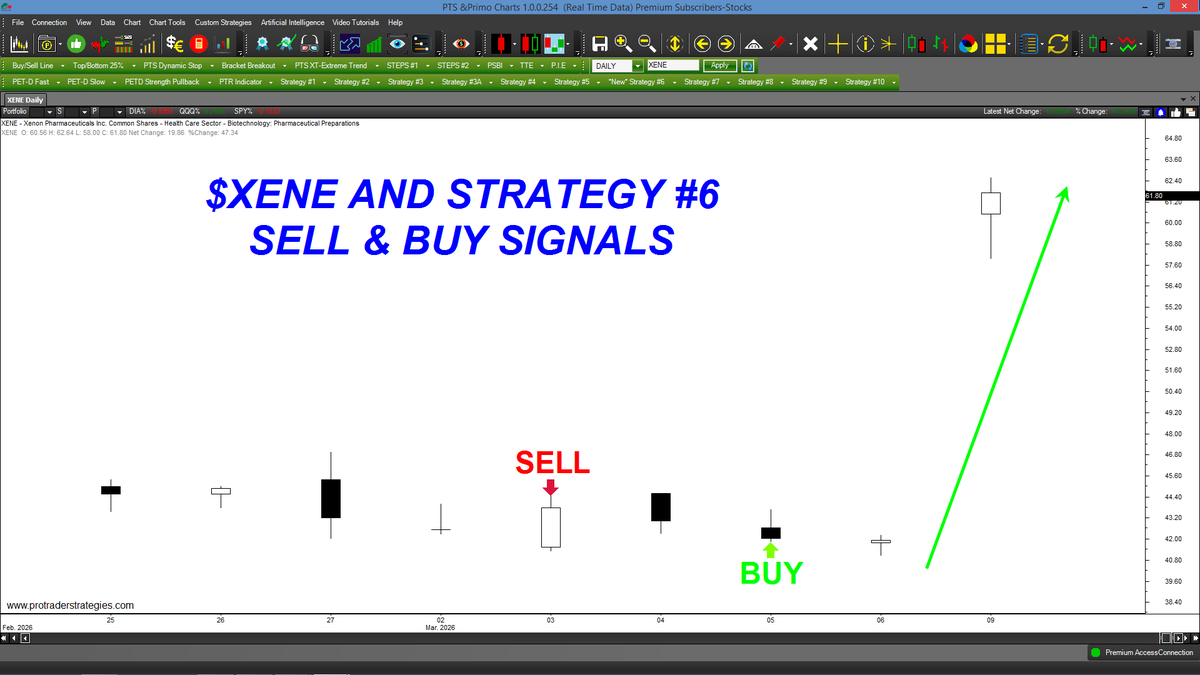 STRATEGY #6 QUICKLY REVERSED WITH A WINNING BUY SIGNAL IN $XENE! If you're a short-term trader, then Strategy #6 is just for you. Most trades last only 1-5 days! Contact http://ProTraderStrategies.com for more info/discounts (All signals for student education only)
