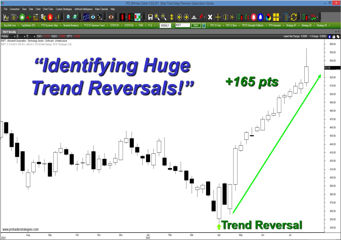 A "PTR" TREND REVERSAL SIGNAL WAS GENERATED WEEKS AGO IN $PSN. Our students around the world love this indicator because it alerts them in advance when a trend reversal is most likely to occur. Only on the PTS Primo Charts at http://ProTraderStrategies.com (Signals for education only)
