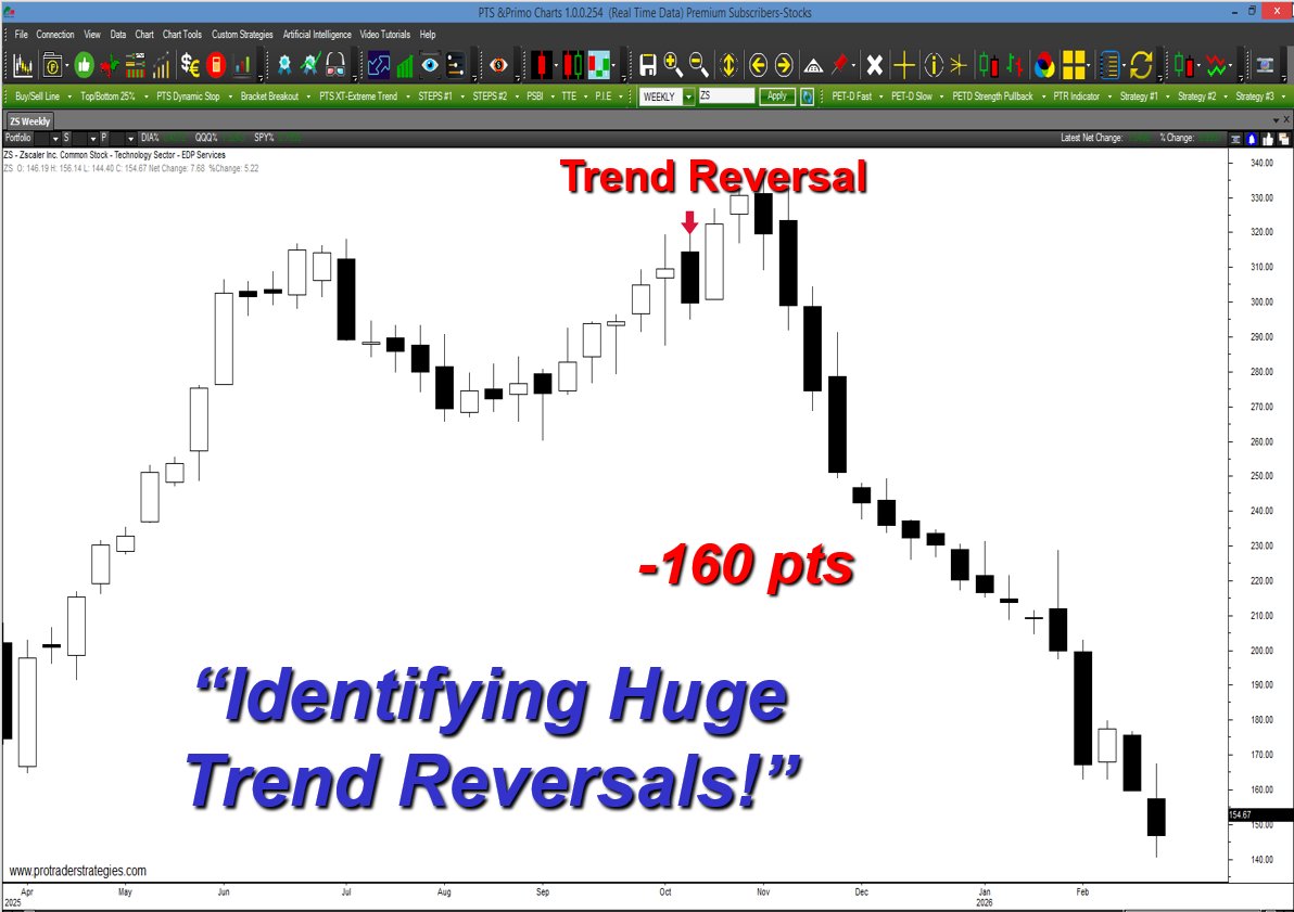 IS YOUR STRATEGY STILL MISSING POWERFUL TREND REVERSAL SIGNALS LIKE THE ONE BELOW IN $ZS? Join me Wed at 10am PST where I'll show you how to "Identify Huge Trend Reversals!" (Signals for education only) Reserve your spot here: http://www.ProTraderStrategies.com