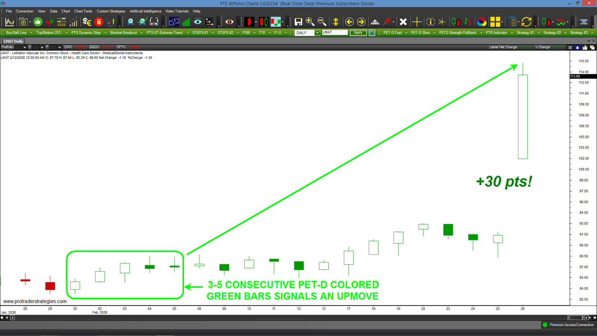 ANOTHER WINNING PTS-XT SIGNAL, THIS TIME IN $LMND! This indicator was designed to identify "extreme trends" in advance. Buy the 1st bar to close in a yellow block - that's it! The ORIGINAL PTS-XT is only found at http://ProTraderStrategies.com (All signals for student education only)