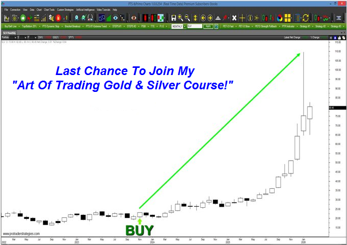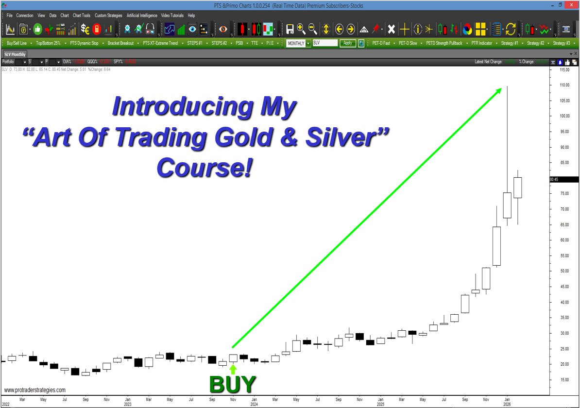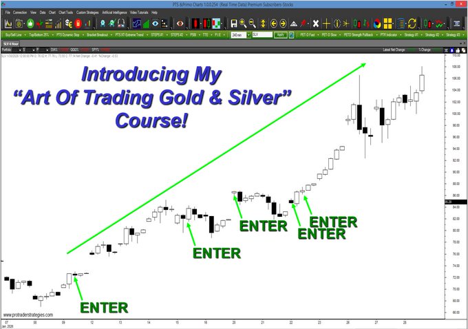 MY NEW COURSE IDENTIFIED THE BUY SIGNAL BELOW IN $SLV! Please join me this Wed for a free webinar where I'll introduce my "Art Of Trading Gold & Silver Course!" Education from a former Stock Exchange Specialist & 49 yr trading veteran. Sign up now at http://ProTraderStrategies.com