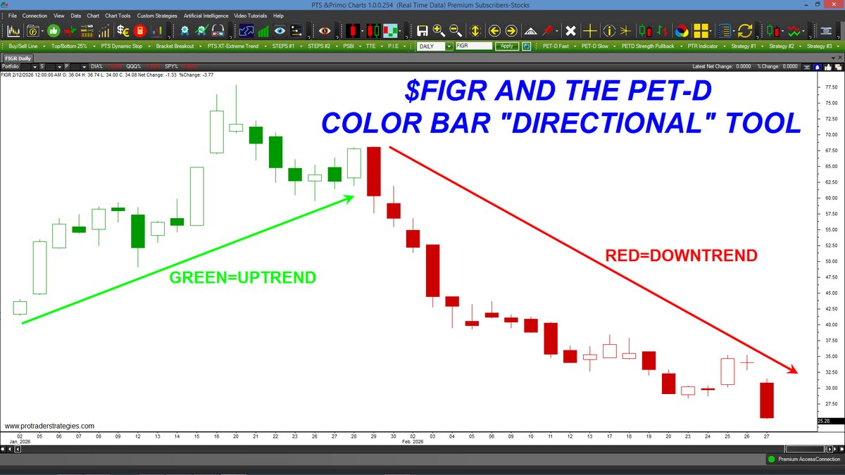 DO YOU THINK OUR PET-D COLOR BAR TOOL COULD HAVE HELPED YOU TRADE $FIGR? The PET-D instantly identifies the direction of ANY market/time frame. The ORIGINAL PET-D color bar tool is only found at http://ProTraderStrategies.com (All signals for student education only)