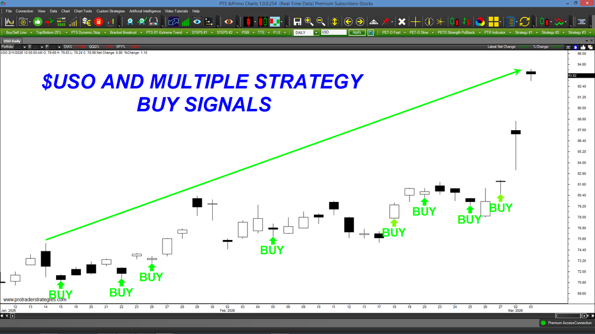 OIL ETF $USO CONTINUES TO RISE BUT OUR STRATEGIES HAVE BEEN GENERATING BUY SIGNALS FOR MONTHS! Our methods are NOT based on fundamental news but on market behavior only. Learn all the rules & how to trade them ONLY at http://ProTraderStrategies.com (All signals for education only)