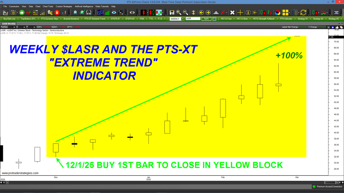 THE PRICE OF $LASR HAS SKYROCKETED +100% SINCE THE PTS-XT GENERATED A BUY SIGNAL! If you're still struggling in the markets our PTS-XT Indicator can turn your trading around! Contact http://ProTraderStrategies.com for more info/discounts (All signals for student education only)