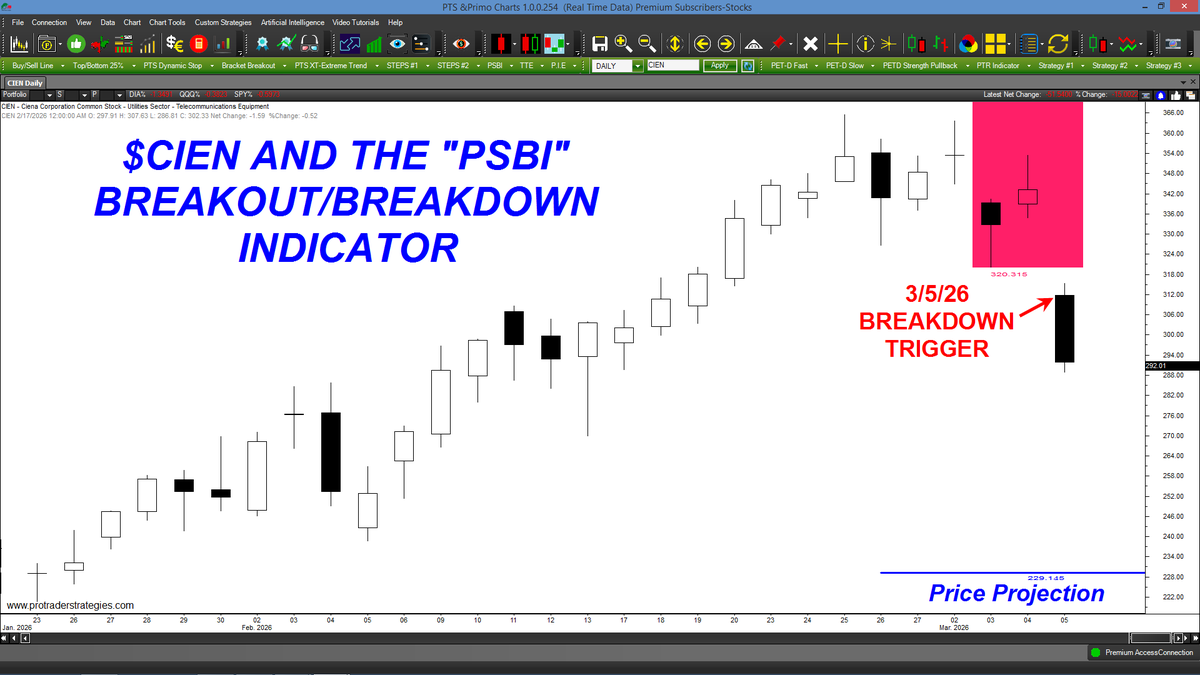 A "PSBI" BREAKOUT & TRIGGER WERE GENERATED TODAY IN $WSC. Whenever the "PSBI" Indicator triggers a breakout or breakdown, a price projection is also displayed. Available ONLY on the PTS Primo Charts at http://ProTraderStrategies.com (All signals for student education only)