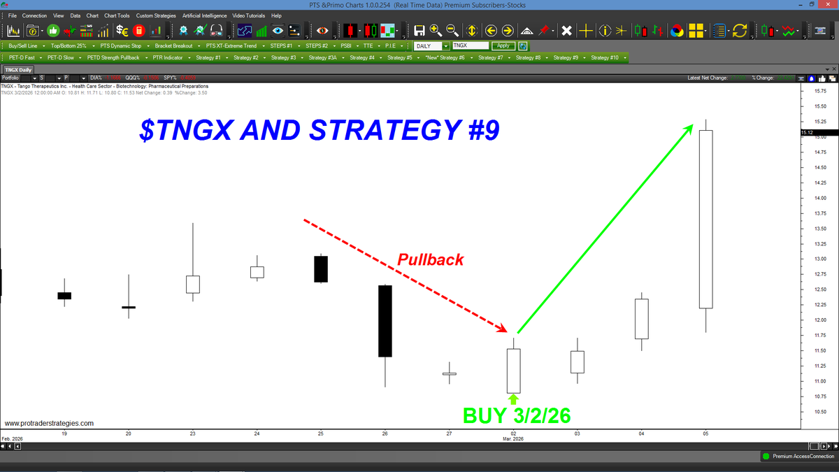 THE PRICE OF $TNGX IS RISING BUT STRATEGY #9 GENERATED A BUY SIGNAL LAST WEEK. Quit wasting time & money on strategies that just don't work. Contact http://ProTraderStrategies.com and start trading with "Pullback" Strategy #9 today! (All signals for student education only)