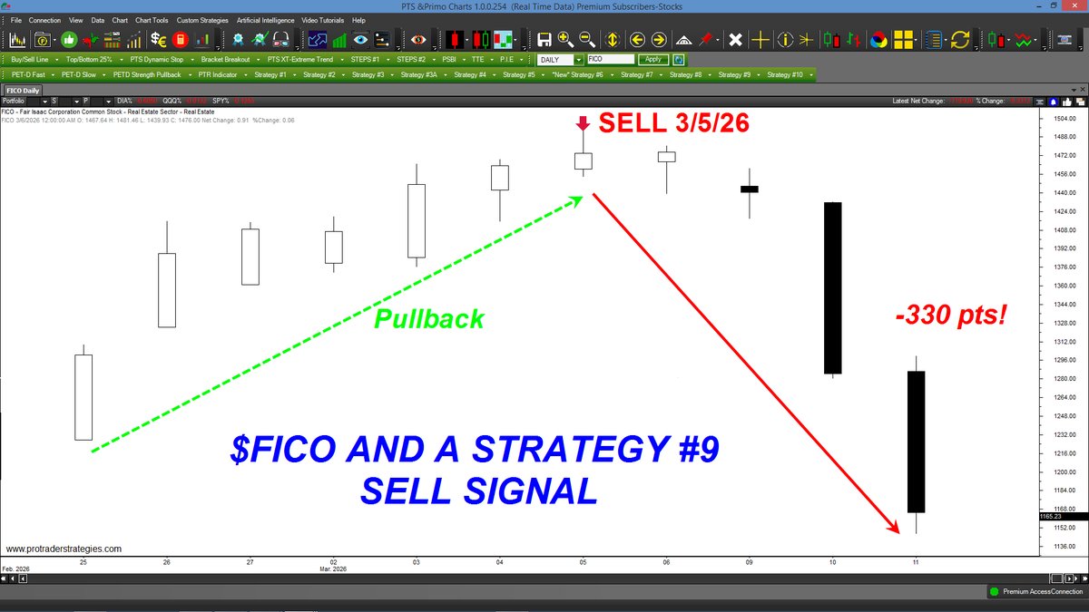 OUR STUDENTS WERE ALERTED TO SELL/EXIT $FICO NEAR THE HIGHS! Strategy #9 is one of our premier "Pullback" methods designed to buy low and sell high. Contact http://ProTraderStrategies.com and start trading with Strategy #9 today! (All signals for student education only)