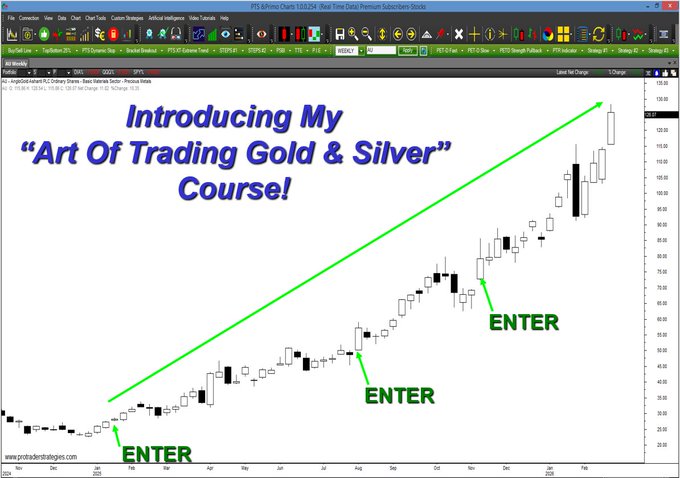 FREE TRADING EDUCATION CLASS STARTS IN 1 HR! Please join me today at 10am PST where I'll reveal my "Art Of Trading Gold & Silver" Course. A method I'll teach in the course generated the entry signals below in weekly $AU (signals for education only)Sign up: https://keap.page/tf141/2026gold.html