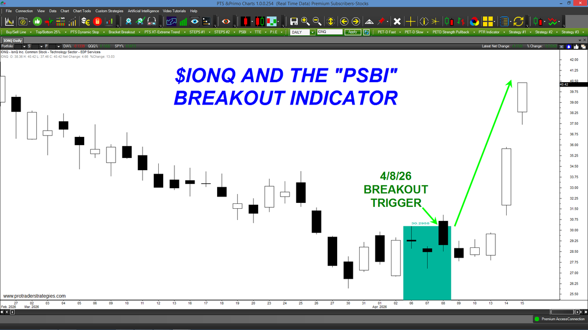 DID YOUR INDICATOR TRIGGER A BREAKOUT IN $IONQ LAST WEEK? THE "PSBI" DID! Still struggling with your trading? Not seeing the type of results you were promised? Contact http://ProTraderStrategies.com & take charge of your trading today with the "PSBI" (All signals for education only)