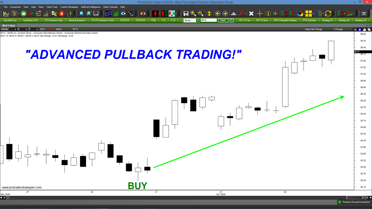 MY "ADVANCED PULLBACK TRADING!" GENERATED THE BUY SIGNAL BELOW IN #NFLX! This method can be applied to ANY market or time frame and this Wed at 10 am PST I'll reveal the trading rules. Reserve your spot at http://ProTraderStrategies.com