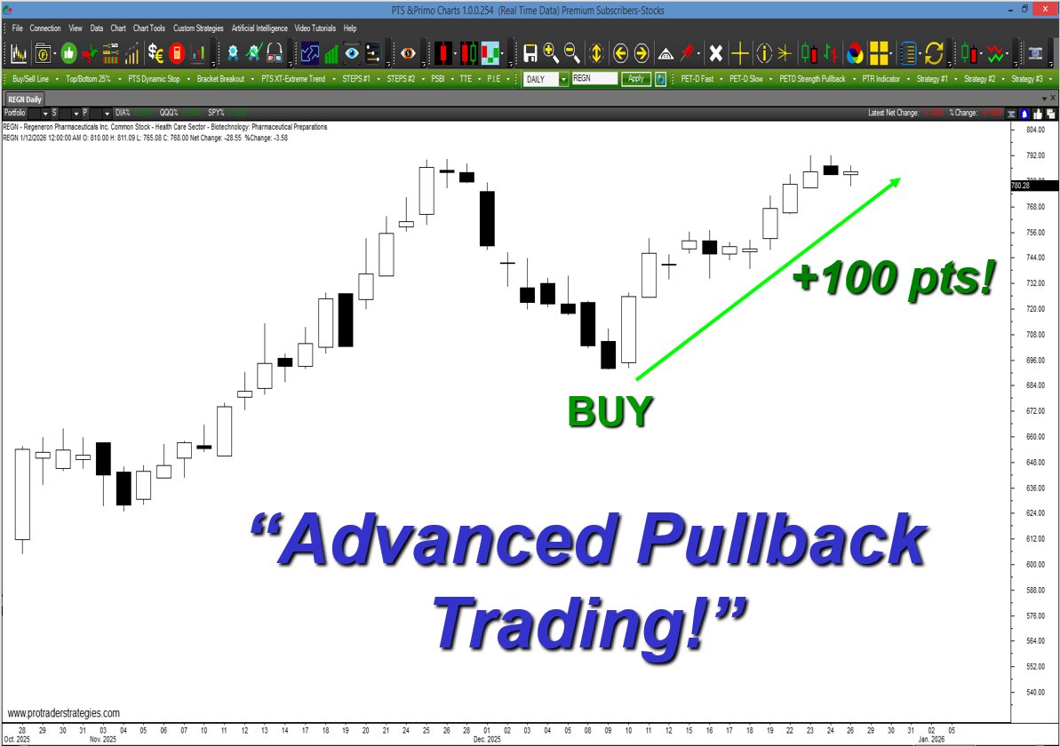 INTRODUCING MY "ADVANCED PULLBACK TRADING" STRATEGY! This Wed at 10 am I'll present a webinar where I'll describe the rules to this method, the same ones that generated the buy signal below in $REGN (for education only) Reserve your spot now at http://ProTraderStrategies.com