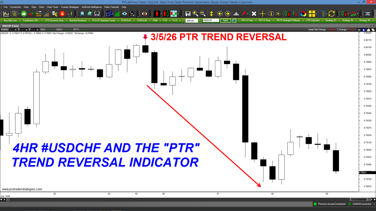 A TREND REVERSAL WAS SIGNALED IN #USDCHF THIS WEEK. This tool was designed to identify the bar that a trend reversal is most likely to take place. Apply to ANY market & time frame & available ONLY at http://ProTraderStrategies.com (All signals for student education only)