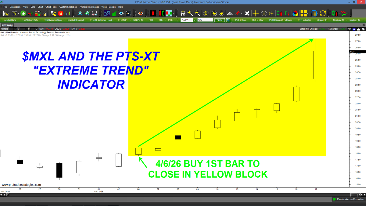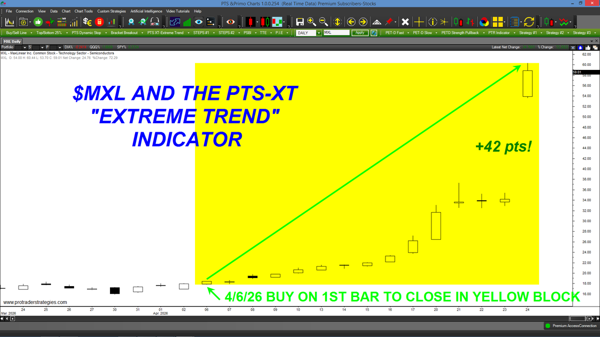 DO YOU THINK OUR PTS-XT INDICATOR COULD HAVE HELPED YOU TRADE $MXL? The "PTS-XT" tool instantly identifies extreme trends in ANY market or time frame & can ONLY be found at http://ProTraderStrategies.com (All signals for student education only)