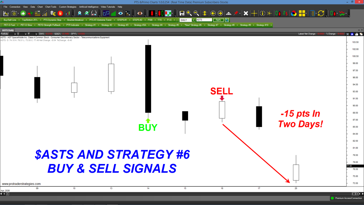 STRATEGY #6 QUICKLY REVERSED INTO A WINNING SELL SIGNAL IN $ASTS. All of our methods are based on market behavior which has shown to produce highly consistent signals. You can only find short-term Strategy #6 at http://ProTraderStrategies.com (All signals for student education only)