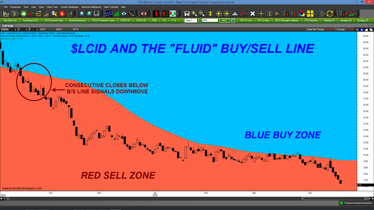 OUR STUDENTS KNEW TO SELL/EXIT $LCID SIX MONTHS AGO! Why do traders continue to buy when a market is moving lower? Our "Fluid" Buy/Sell Line was designed to instantly identify the overall trend of ANY market/time frame. Only at http://ProTraderStrategies.com (Signals for education only)