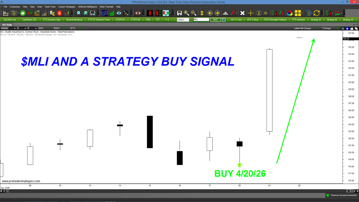 DID YOUR STRATEGY GENERATE A BUY SIGNAL IN $MLI 2 DAYS AGO? Still struggling with your trading? Not seeing the type of results you were promised? Contact http://ProTraderStrategies.com & take charge of your trading w/ our consistent strategies for ALL markets(Signals for education only)