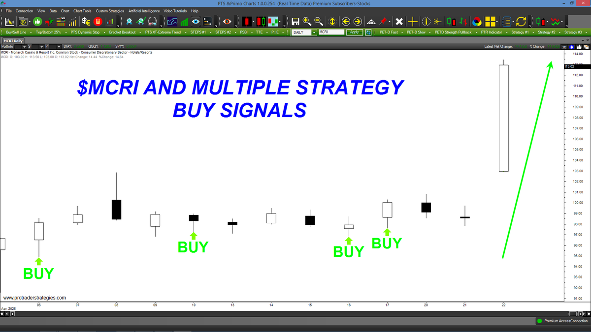 OUR STUDENT WERE PROVIDED WITH MULTIPLE CHANCES TO BUY $MCRI BEFORE PRICE SOARED TODAY! All of our methods are based on market behavior, not fundamentals. Become a consistent trader for the very 1st time ONLY at http://ProTraderStrategies.com (All signals for student education only)